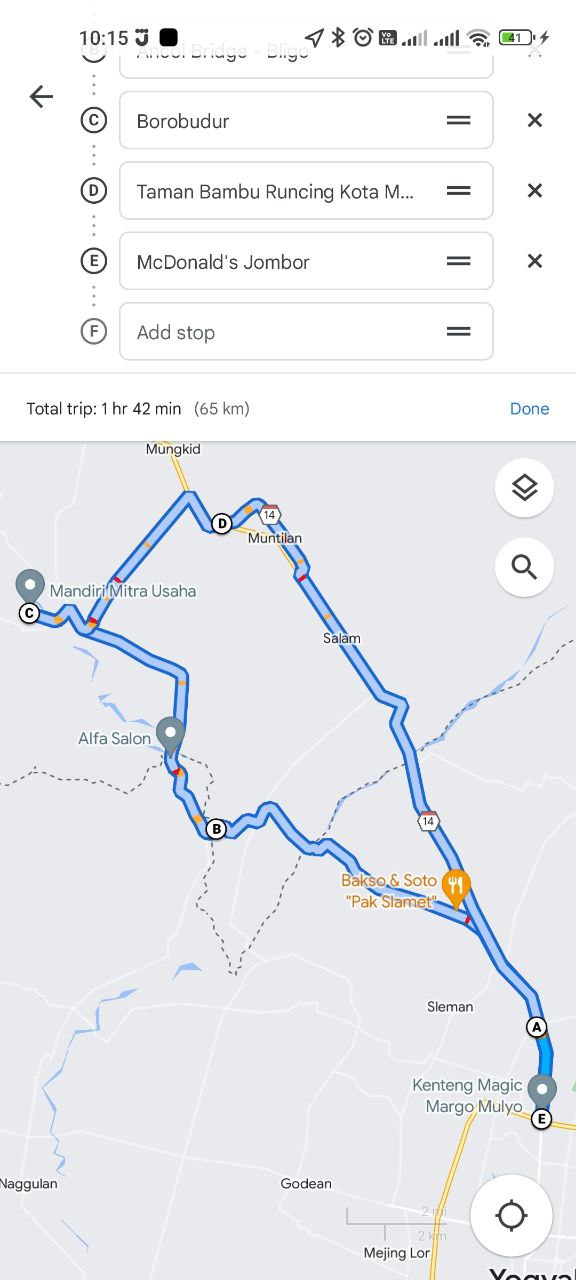 Semisal kasus diatas, saya ingin membuat rute dari McDonalds Jombor ke Borbudur lewat jalur berikut :